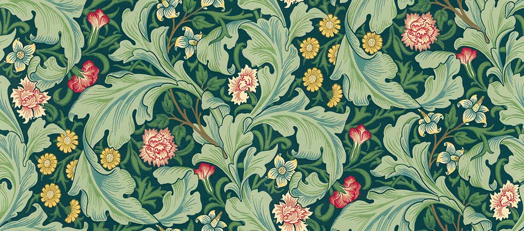 ジョン・ヘンリー・ダールはモリスの一番弟子として彼の足跡を追うことで、ブランドの指針と技術を維持していました。 その最も分かりやすいデザインがレスターです。モリスがデザインしたバチェラーズ・バトンから影響を受けた柄で、1887年に実業家のマンダー夫妻によって建てられたウィティック・マナーのモーニングルームに使用されました。