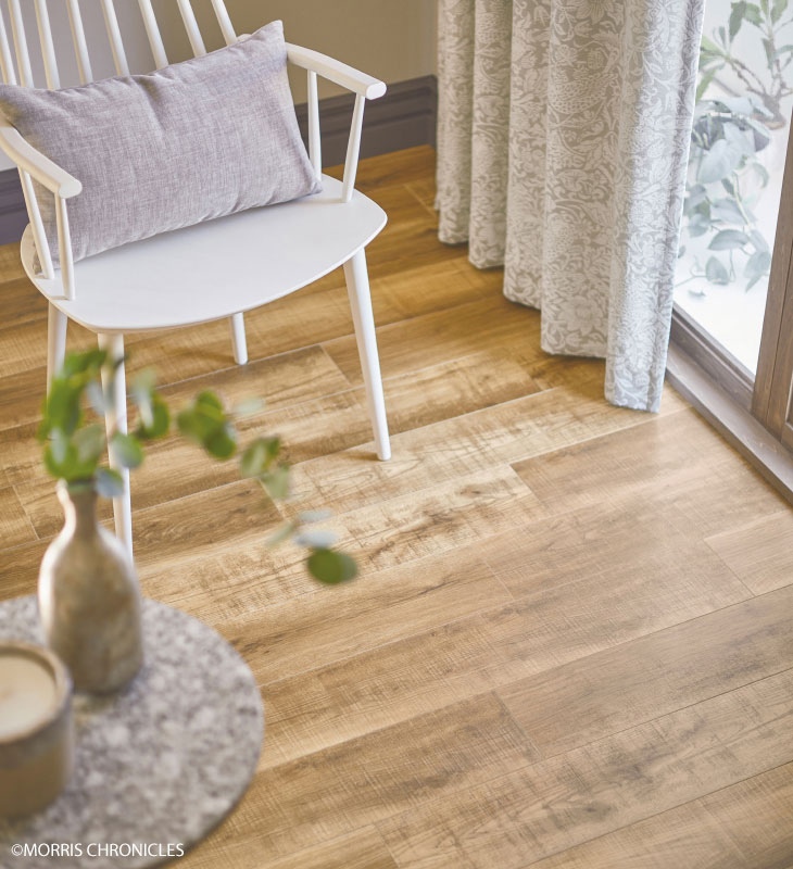ソーマークの入ったオーク柄。木目の抑揚を活かし、落ち着いた表情に仕上げました。