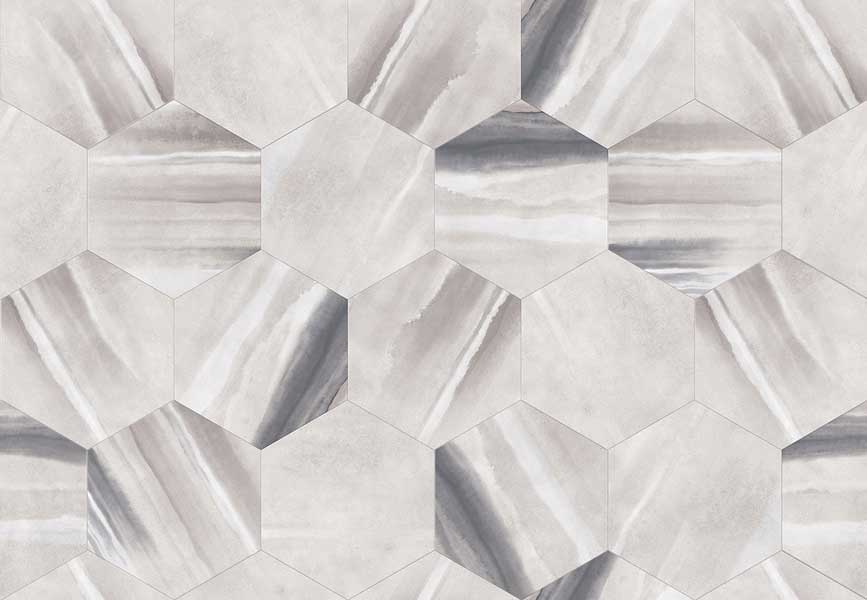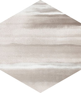 水彩のにじみを表現したヘキサゴンタイルです。プレーンヘキサと組み合わせて施工することで、さまざまなデザイン貼りが可能です。
