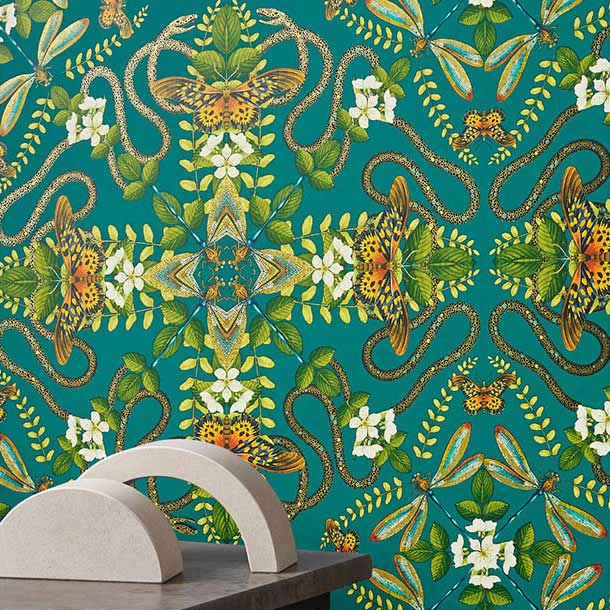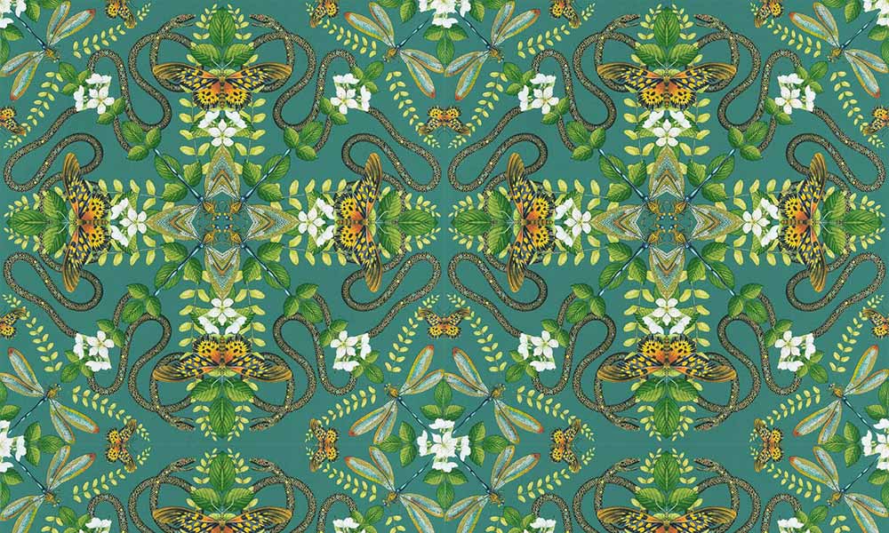 動植物をパターン化したデザインが幻想的な世界に導く。