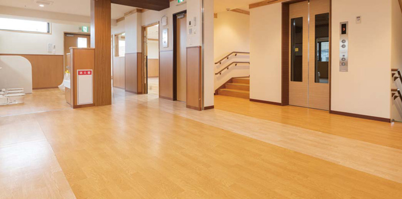抗ウイルス性ノーワックス発泡ビニル床シート。快適な歩行感と転倒時の安全性を実現しました。