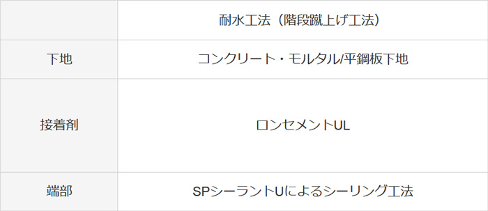 ※ 接着剤のご案内はページ下部にございます。 ※ 平鋼板下地の場合は、十分な防錆処理をしてください。 ※ チョークリールを使用する場合は白色をお使いください。 |