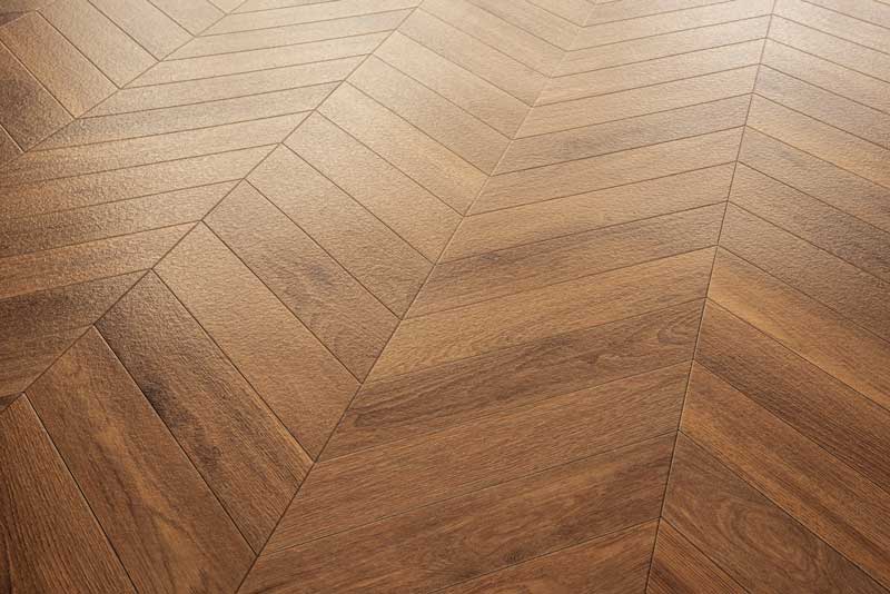 クラシックな印象のオークヘリンボーン柄。濃淡差をつけることでリズミカルな表情になっています。大胆で遊び心のある空間づくりに。