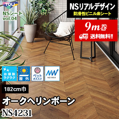 NS4231 オークヘリンボーン [NSリアルデザイン] 東リ NSシート 屋外対応 防滑性ビニル床シート 1820mm幅 (m販売)