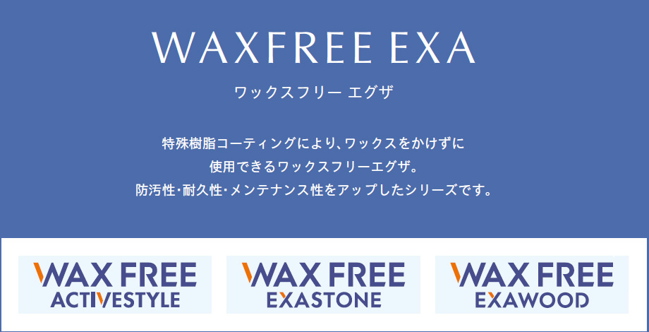 (ワックス不要タイプ) サイズ : 457.2 × 457.2mm 全 厚 : 3.0mm(トップクリア 0.3mm) 梱 包 : 16枚入(約3.34㎡) 重 量 : 約19kg / ケース 面取加工 : 面取無し 表面エンボス : NS梨地 日本製