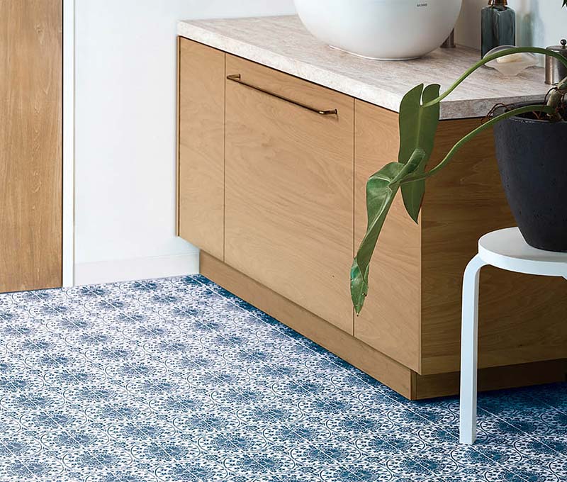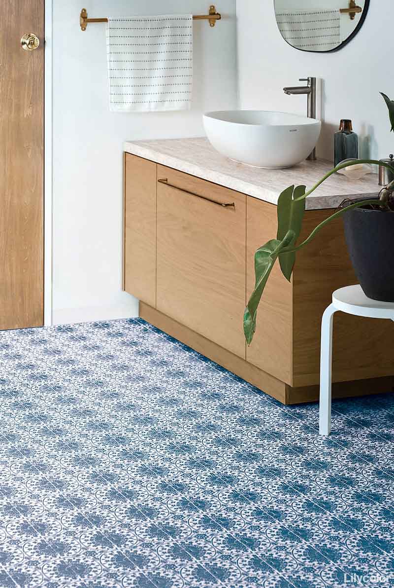 クラフト感あふれるタイル柄はエキゾチックな印象を醸し出します