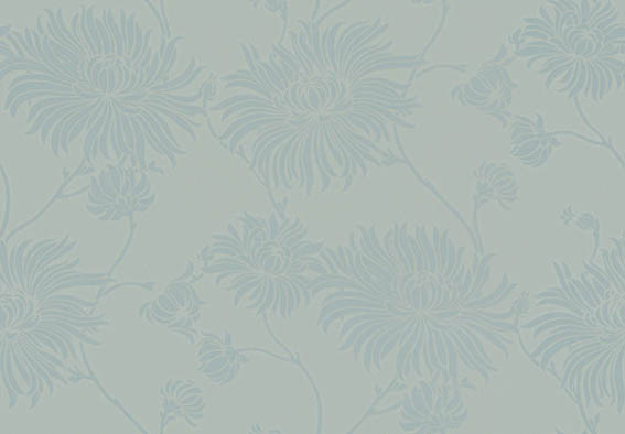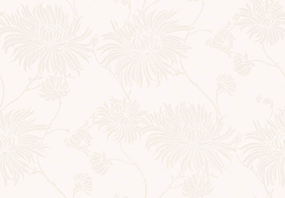 曲線的なタッチで菊を描いたものプリント「キモノ」は、アンティークテキスタイルからインスパイアされたデザイン。人気が高く、繰り返しカラーパレットを変えながら復刻されています。