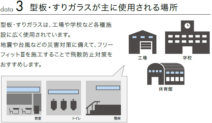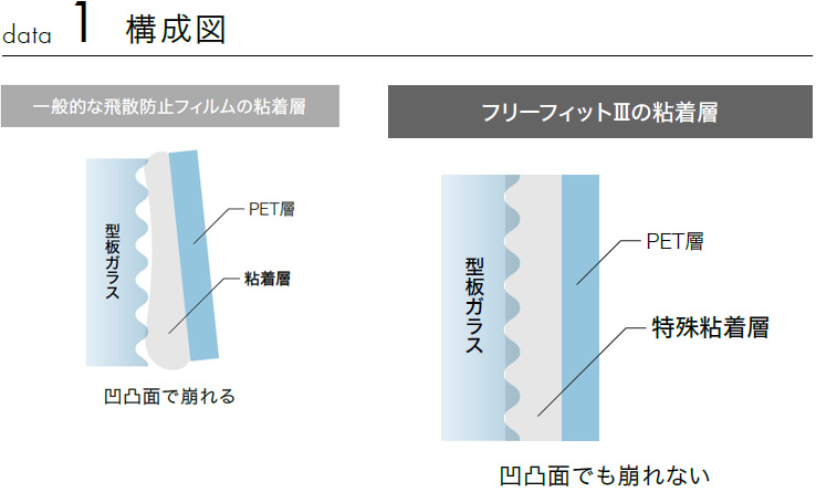 ● JIS A 5759 飛散防止性能試験(※)に適合した型板・すりガラス用フィルムです。