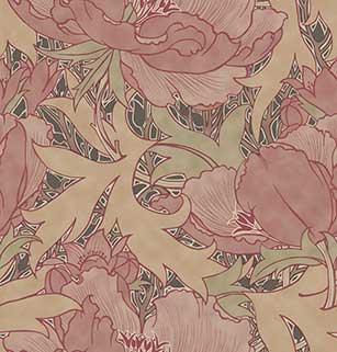 ターンブル&ストックデール社によってインテリア用ファブリックとして製作されたポピーは、描かれている曲線的な花びらが不可思議な儚さを演出しています。 熱心な庭師であったリンジー ・P・バターフィールドは裏庭や庭園でよく見かける花をデザインに採用しました。緻密なフォルムと鮮やかな色合い、そして短命なポピーの儚さは別世界のような魅力で、見るものを魅了します。