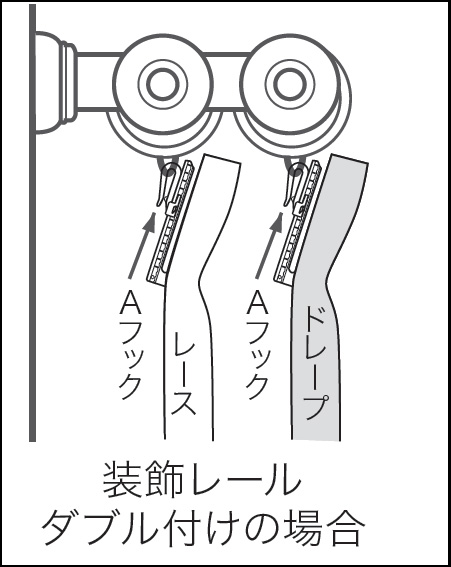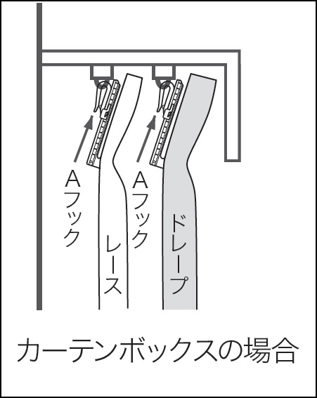 カーテンの吊り下げ方です。フックを選びます。