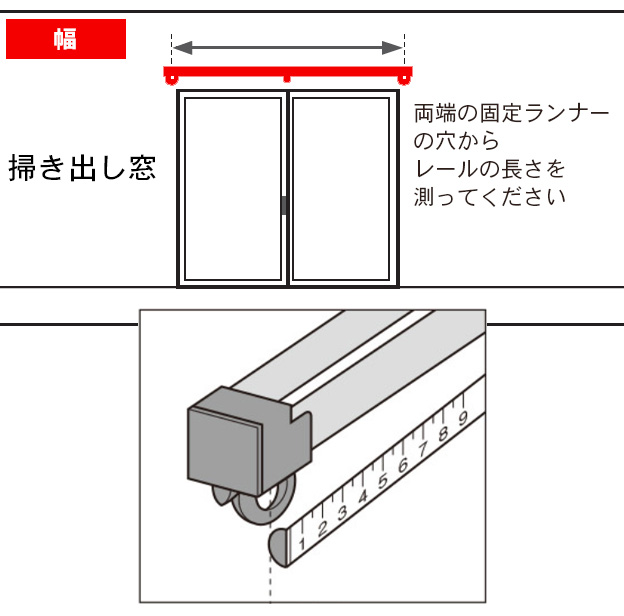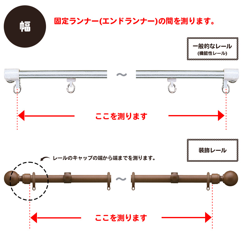 ※ カーテンレールの採寸は金属メジャーを使い、両端の固定されているキャップストップ(レールカバー)の穴を基準に測ってください。