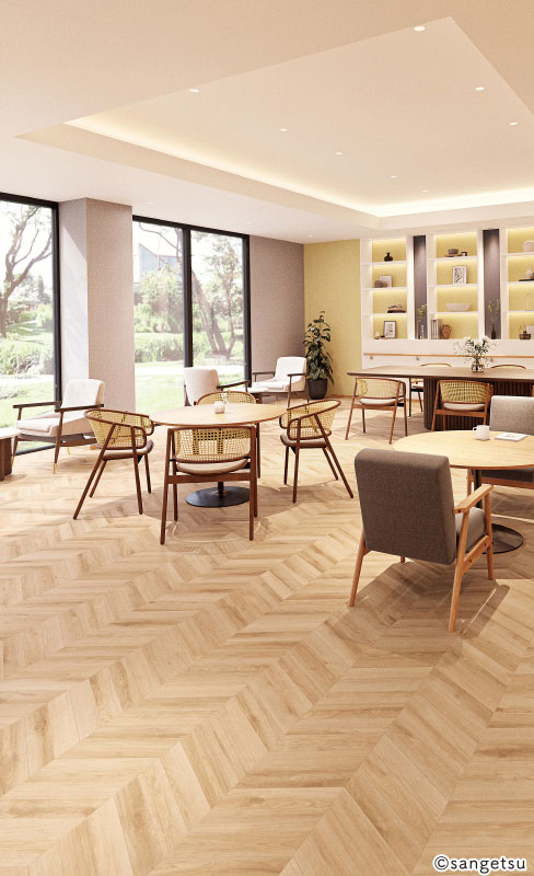 目地や木目の柄とエンボスが同調したヘリンボーン柄です。