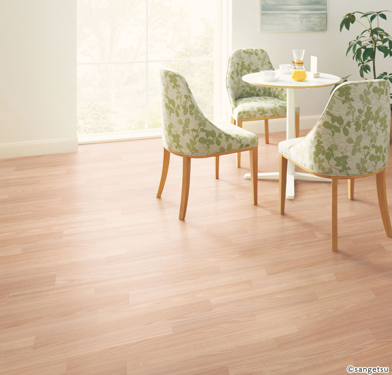 ナーシングフロアVは医療・福祉施設向けの2.0mm厚発泡複層シート。 ワックスフリーコーティング仕様です。