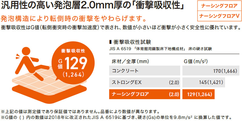 ナーシングフロアVは医療・福祉施設向けの2.0mm厚発泡複層シート。 ワックスフリーコーティング仕様です。