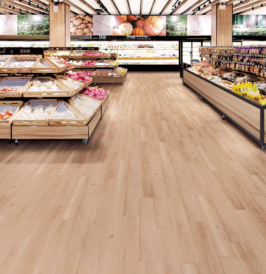 ● メンテナンス用樹脂ワックスを塗布する必要はありません。日常的にモップ、固く絞った雑巾などでヒールマークなどの汚れを取り除いてください。目地に沿った清掃をおすすめします。 ●「NW-EXシリーズ」は、製品の特性上、素足や靴下での歩行時に素材表面が引っかかることがあります。上靴、スリッパ履きで使用することをおすすめします。 ● 高耐久UV樹脂コーティングが摩滅してしまうため、ドライメンテナンスは行わないでください。 ● 若干寸法にバラツキがあります。施工の際にはご注意ください。 ● タイル一枚一枚の色柄に変化と濃淡があります。この不均一感が、仕上がったフロアにより一層の自然感をもたらします。同じ色調のタイルがかたよった場合は、部分的に差し替えることで違和感なく納まります。 ● タイル四辺に光沢が異なる部分があります。 |
