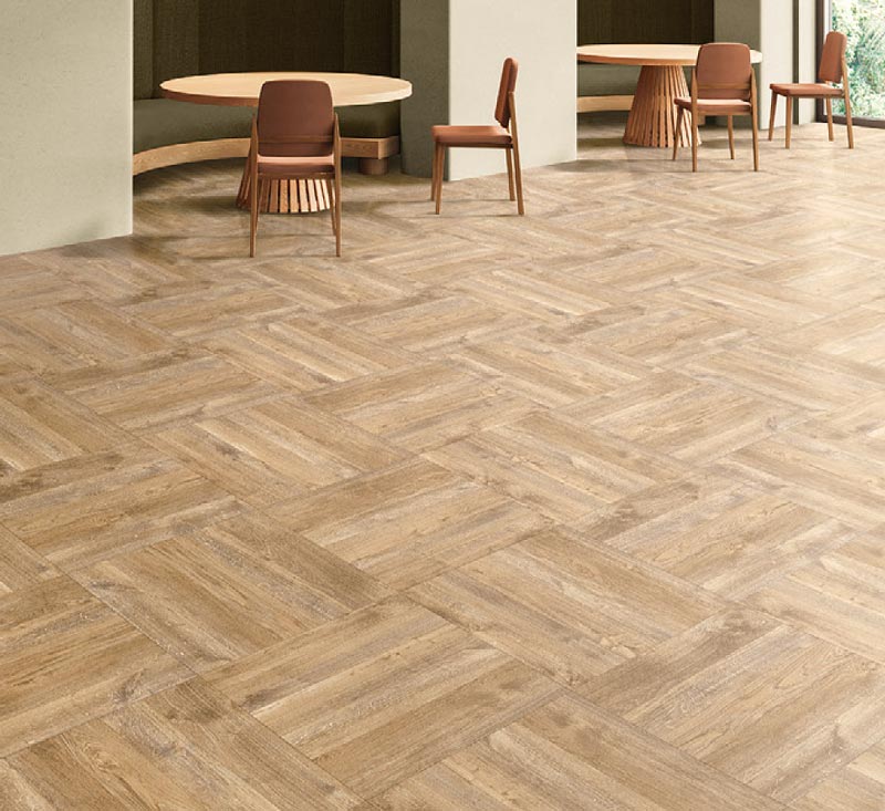 ● メンテナンス用樹脂ワックスを塗布する必要はありません。日常的にモップ、固く絞った雑巾などでヒールマークなどの汚れを取り除いてください。目地に沿った清掃をおすすめします。 ●「NW-EXシリーズ」は、製品の特性上、素足や靴下での歩行時に素材表面が引っかかることがあります。上靴、スリッパ履きで使用することをおすすめします。 ● 高耐久UV樹脂コーティングが摩滅してしまうため、ドライメンテナンスは行わないでください。 ● 若干寸法にバラツキがあります。施工の際にはご注意ください。 ● タイル一枚一枚の色柄に変化と濃淡があります。この不均一感が、仕上がったフロアにより一層の自然感をもたらします。同じ色調のタイルがかたよった場合は、部分的に差し替えることで違和感なく納まります。 ● タイル四辺に光沢が異なる部分があります。 |