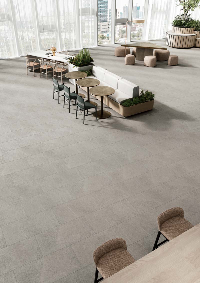 イタリアで採石されるピアセンティーナの結晶感をパールインクで表現。白いベイン(筋)模様を取り入れた繊細な表情がモダンな空間を演出します。