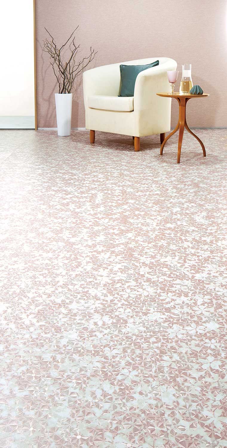 ※ サキゾメサクラ、サクラ、マンカイザクラの基調色は類似色にしていますが、色差が生じる場合があります。 ※ タイル間での柄合わせはできません。 ● 若干寸法にバラツキがあります。施工の際には、ご注意ください。 ● タイル一枚一枚の色柄に変化と濃淡があります。この不均一感が、仕上がったフロアにより一層の自然感をもたらします。 メンテナンス ● 施工後、養生期間をおいてから洗浄剤でポリッシャー洗浄し、よくすすいだ後に樹脂ワックス(ニューFBワックス・Uワックス・ツヤノンワックス(抗菌))を塗布してください。 ● 特に初期メンテナンスでは、タイル表面を充分に洗浄した後ワックスを塗布してください。 ● 状況に応じて、固く絞ったモップでの水拭きによる1日の清掃回数を増やすなど、日常のメンテナンスにご留意ください。 |