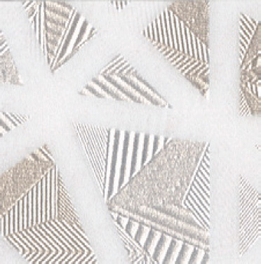 「切子」とは、硝子の表面に模様を彫刻する技法。 伝統文様である「菊繋ぎ切子」をモチーフにしました。 反射エンボスが生み出す繊細なきらめきを独自技術で3ミリの厚みに表現。