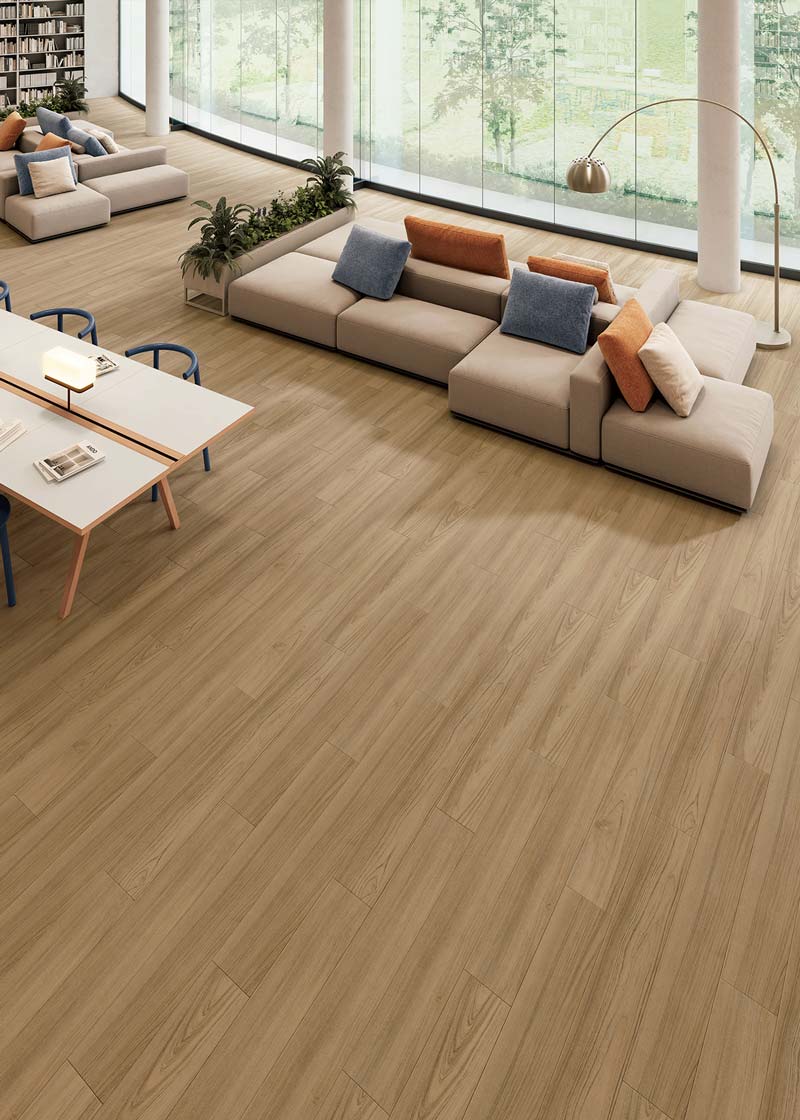 ※ タイル間での柄合わせはできません。 ● 若干寸法にバラツキがあります。施工の際には、ご注意ください。 ● タイル一枚一枚の色柄に変化と濃淡があります。この不均一感が、仕上がったフロアにより一層の自然感をもたらします。 メンテナンス ● 施工後、養生期間をおいてから洗浄剤でポリッシャー洗浄し、よくすすいだ後に樹脂ワックス(ニューFBワックス・Uワックス・ツヤノンワックス(抗菌))を塗布してください。 ● 特に初期メンテナンスでは、タイル表面を充分に洗浄した後ワックスを塗布してください。 ● 状況に応じて、固く絞ったモップでの水拭きによる1日の清掃回数を増やすなど、日常のメンテナンスにご留意ください。 |