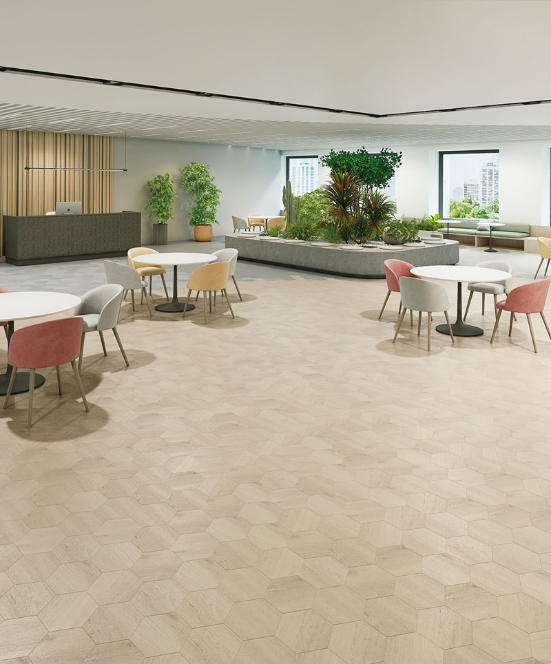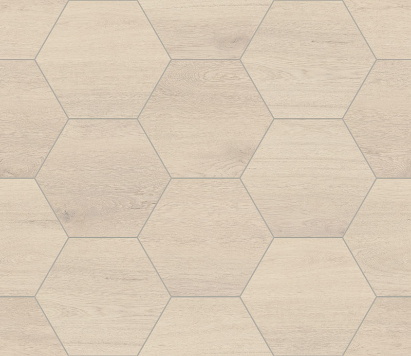 オーク柄の六角形タイル。ナチュラルモダンな雰囲気を演出します。