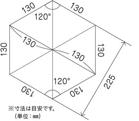 サイズ : 六角形 全 厚 : 3.0㎜厚 表層透明ビニル層0.3㎜ 64枚入 / 2.80㎡ / ケース