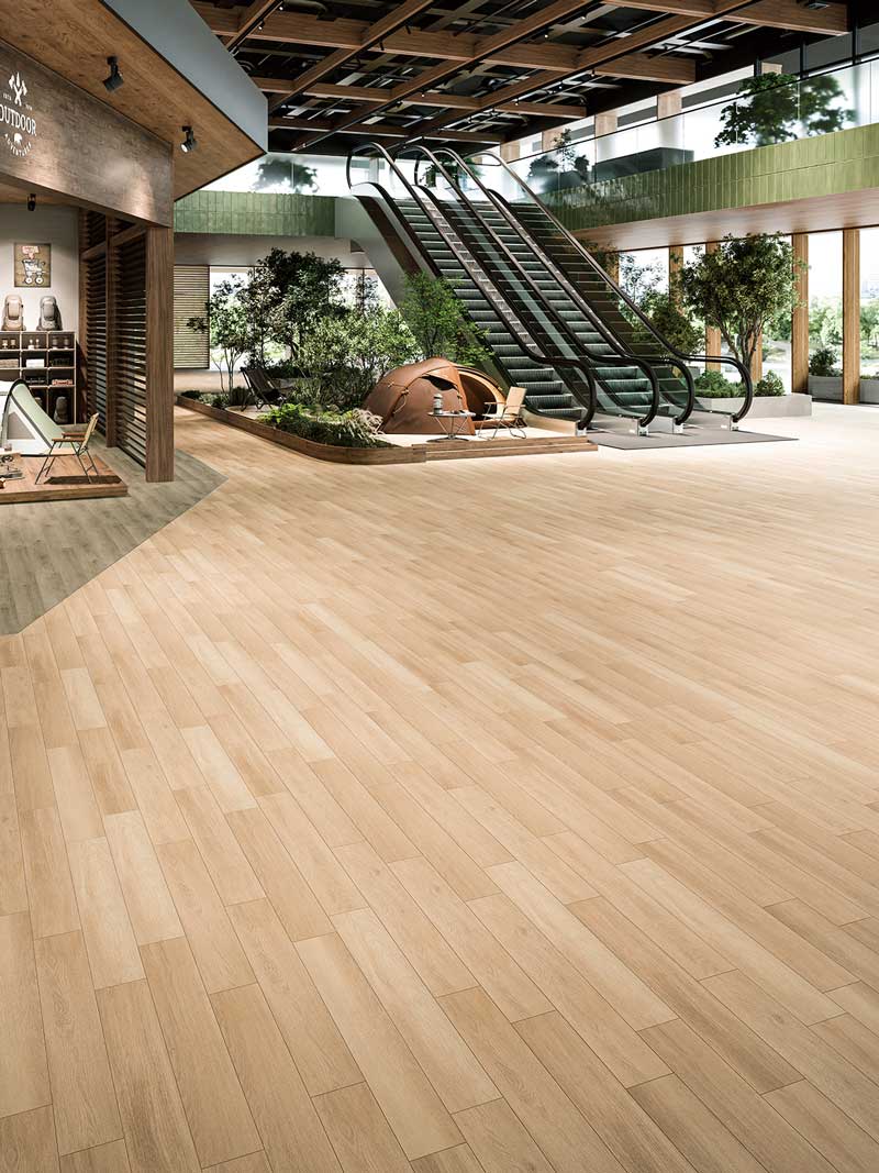 木材の持つ自然な表情をふんだんに取り入れたオーク柄。大らかな色の抑揚と多色感ある奥深い表情のデザインです。