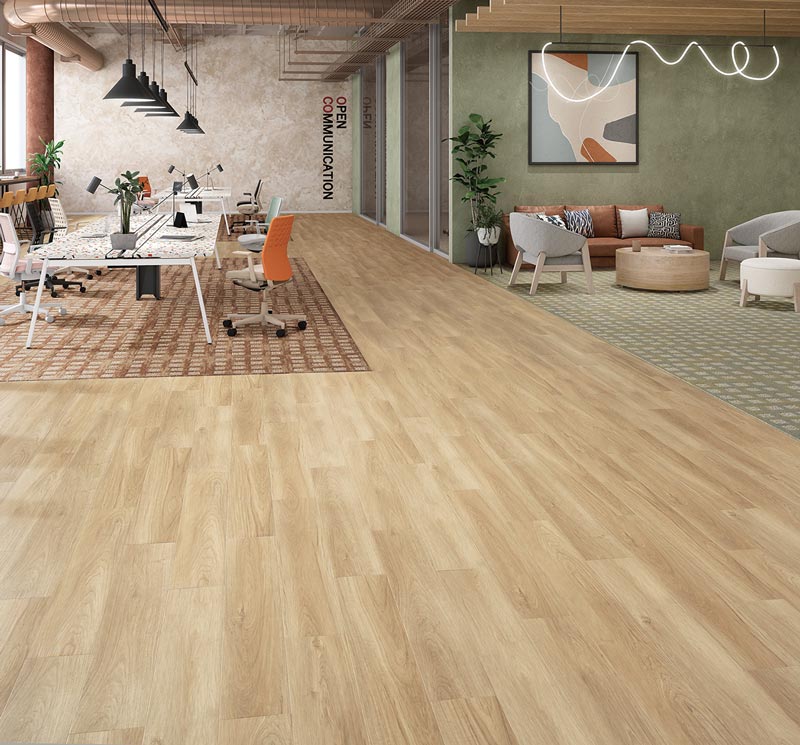 シャープな木理と豊かな色変化が心地よく、自由で開放的な印象の空間を創出します。