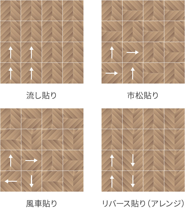 ■ 貼り方例: 貼り方によってさまざまな空間を演出できます。