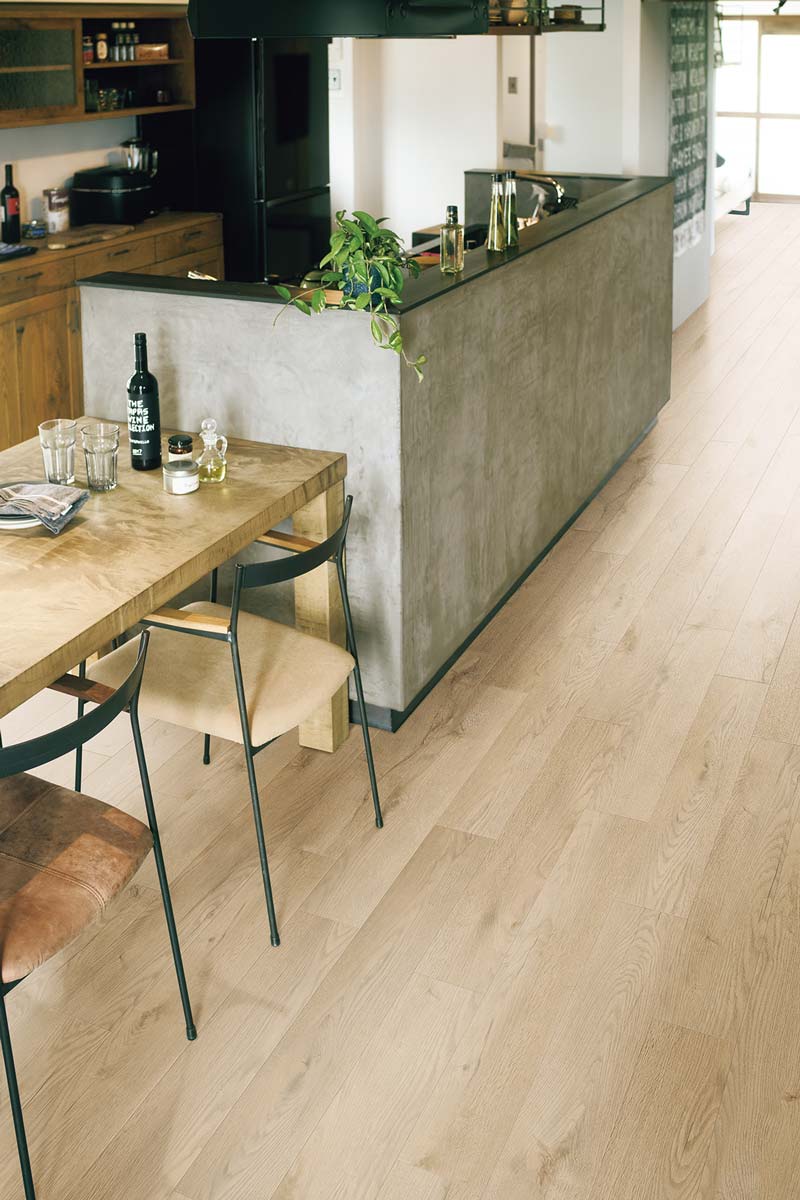 割れや節などのナチュラルな表情と乾いた質感が特長の木目柄。
