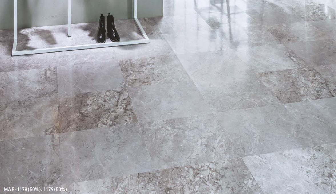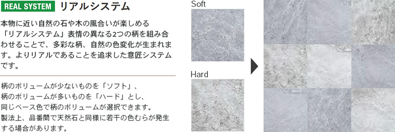 Soft:シックなグレーの大理石。 抑揚を抑えた柄。