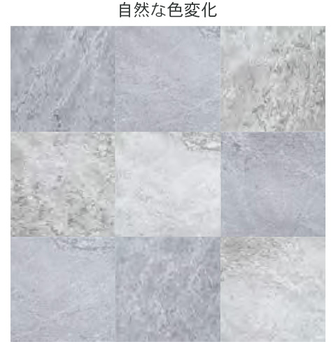 ※ 製法上、品番間で天然石と同様に若干の色むらが発生する場合があります。 ※ 普通合板下地の場合はセメントU10を推奨します。 ※ 石の自然な風合いを出すため、色ムラがあったり、同じ品番でも部位によって色が異なるものがございます。無料サンプルにてご確認ください。 ※ ある種のゴム製品との接触によって、汚染されることがありますのでご注意ください。 ※ 品番・サイズの違う商品を組み合わせる場合、寸法誤差が生じることがあります。現場での調整をお願いいたします。 |